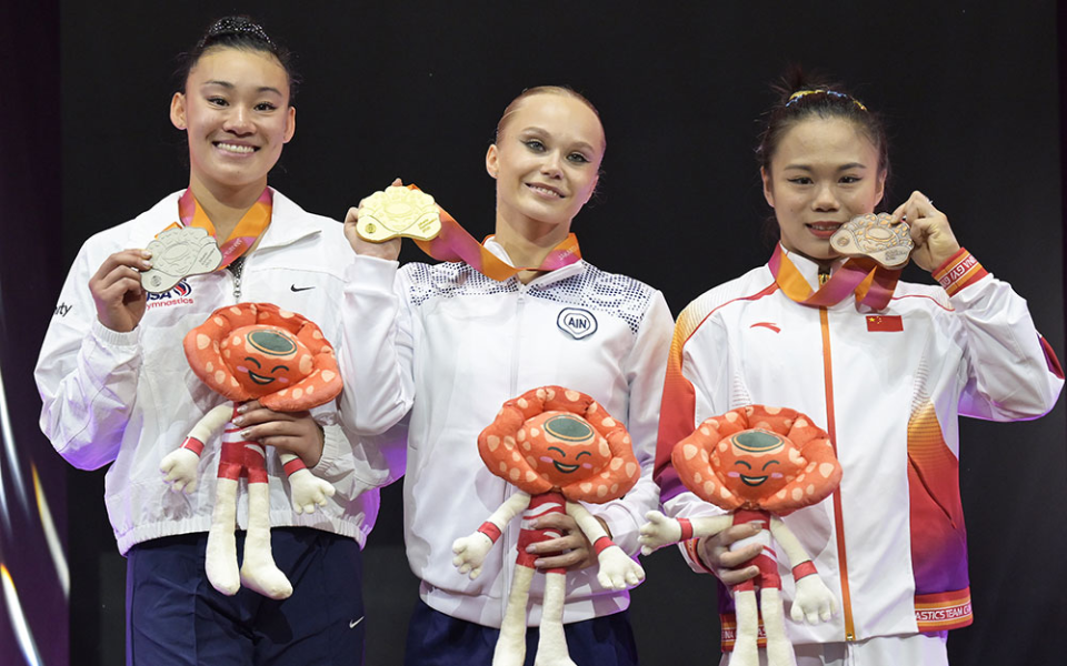 来源:新华社新媒体 2.2025年国际体操联合会世界体操锦标赛决出女子全能冠军(Gymnastics)10月23日晚间,在印度尼西亚雅加达举行的女子体操全能决赛中,悬念持续至最后一套动作才见分晓。最终,中立运动员梅尔尼科娃重获世锦赛女子全能冠军。这位25岁的选手在平衡木项目中虽然出现失误掉落器械,但在自由体操项目上发挥稳定,总成绩超越状态火热的美国选手黄莉安,斩获个人第二枚世锦赛全能金牌。中国选手张清颖在平衡木项目中表现亮眼,6.7的难度分(D分)堪称极高水准,她最终获得14.833分的平衡木全场最高分,凭借这一优势成功摘得女子全能铜牌。
