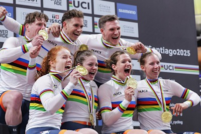 10月22日,2025年国际自行车联盟场地自行车世界锦标赛首个比赛日,在智利圣地亚哥的佩尼亚洛伦自行车馆决出了三项冠军。荷兰选手洛蕾娜・维贝斯为赛事奠定了精彩基调——就在几周前,她刚夺得国际自行车联盟砾石路自行车世锦赛冠军,此次又斩获场地自行车女子捕捉赛金牌。随后,她的荷兰同胞包揽了男女团体争先赛两项冠军:女子团体争先赛冠军由斯特菲・范德皮特、赫蒂・范德武和金伯利・卡莉共同夺得;男子团体争先赛冠军则归属杰弗里・胡格兰、罗伊・范登伯格和哈里・拉夫雷森组合。当日还展开了男女团体追逐赛的首轮较量。此外,男子积分赛、男子一公里计时赛、男子个人追逐赛、女子争先赛以及女子全能赛的角逐也将陆续上演,这些项目的冠军都将赢得象征国际自行车联盟世界冠军的“彩虹衫”。